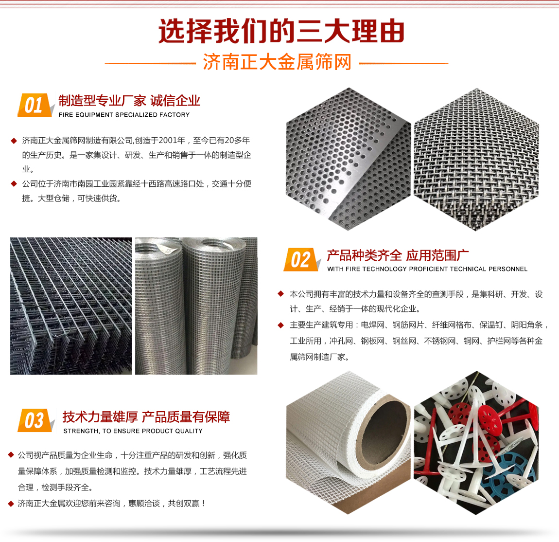 濟南正大金屬篩網(wǎng)制造有限公司,成立于2001年,至今已有20多年的生產(chǎn)歷史,主要生產(chǎn)建筑用:電焊網(wǎng)、鋼筋網(wǎng)片、纖維網(wǎng)格布、保溫釘、陰陽角條,工業(yè)所用,沖孔網(wǎng)、鋼板網(wǎng)、鋼絲網(wǎng)、不銹鋼網(wǎng)、銅網(wǎng)、護欄網(wǎng)等各種金屬篩網(wǎng)制造廠家。 本公司擁有豐富的技術(shù)力量和設(shè)備齊全的查測手段,是集科研、開發(fā)、設(shè)計、生產(chǎn)、經(jīng)銷于一體的現(xiàn)代化企業(yè)。公司位于濟南市南園工業(yè)園緊靠經(jīng)十西路高速路口處,交通十分便捷。